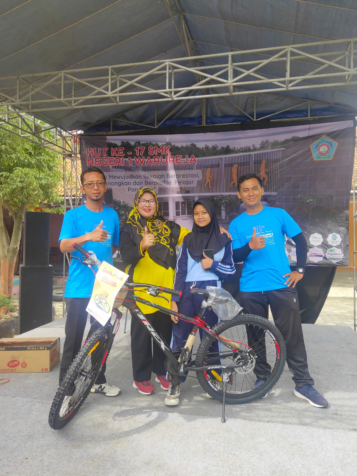 Masih dalam rangkaian kegitan HUT ke-17 SMK Negeri 1 Warureja dihari ketiga Kamis, 27 Oktober 2022 dengan kegiatan jalan sehat bersama seluruh warga SMK Negeri 1 Warureja dan juga termasuk mahasiswa UPS Tegal yang sedang melaksanakan PLP di SMK Negeri 1 warureja dengan rute menikmati jalan baru arah ke Situs Semedo yang dilanjutkan dengan pengundian ratusan doorprize dari bapak / ibu guru / karyawan dan dari berbagai sponsorship yang telah ikut berpartisipasi dalam kemeriahan HUT ke-17 SMK Negeri 1 Warureja dengan doorprize utama sebuah sepeda MTB yang disediakan langsung oleh Ibu kepala Sekolah. Dalam pembagian doorprize banyak hiburan yang disajikan oleh siswa siswi SMK Negeri 1 Warureja sebagai bentuk kratifitas siswa dan juga pengembangan bakat dan potensi yang dimiliki siswa.