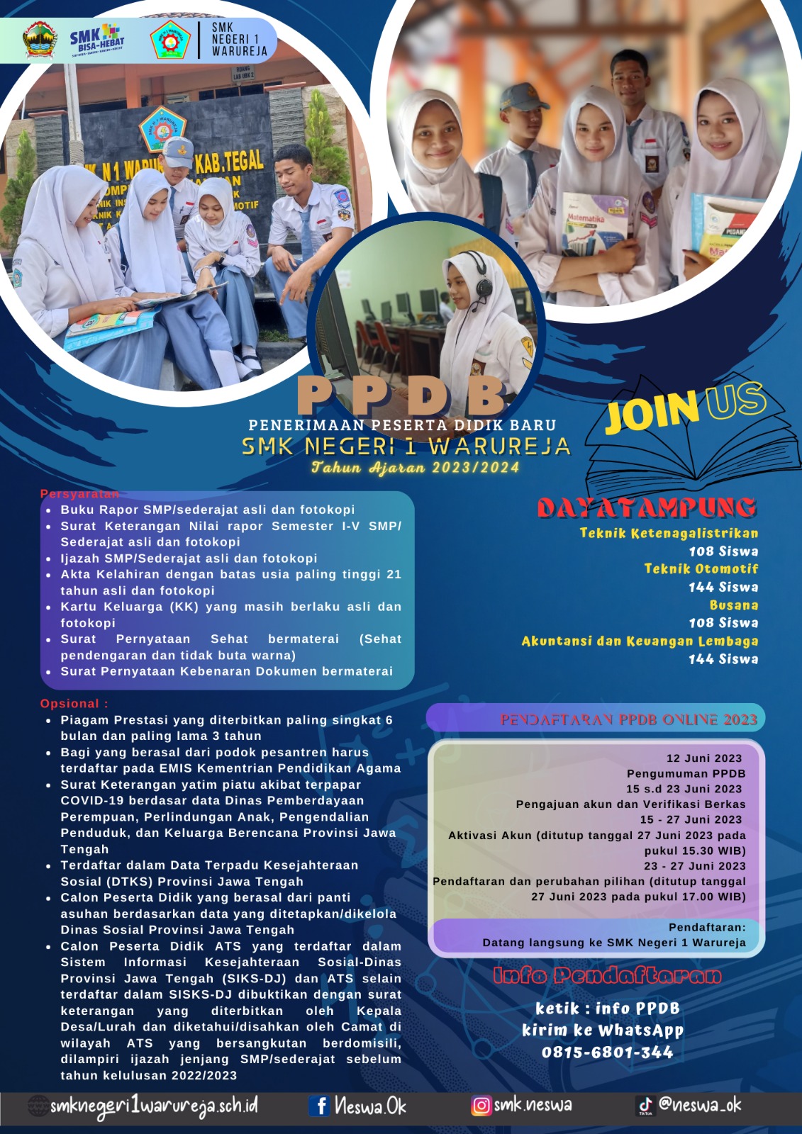 Pendaftaran datang langsung ke SMK Negeri 1 Warureja