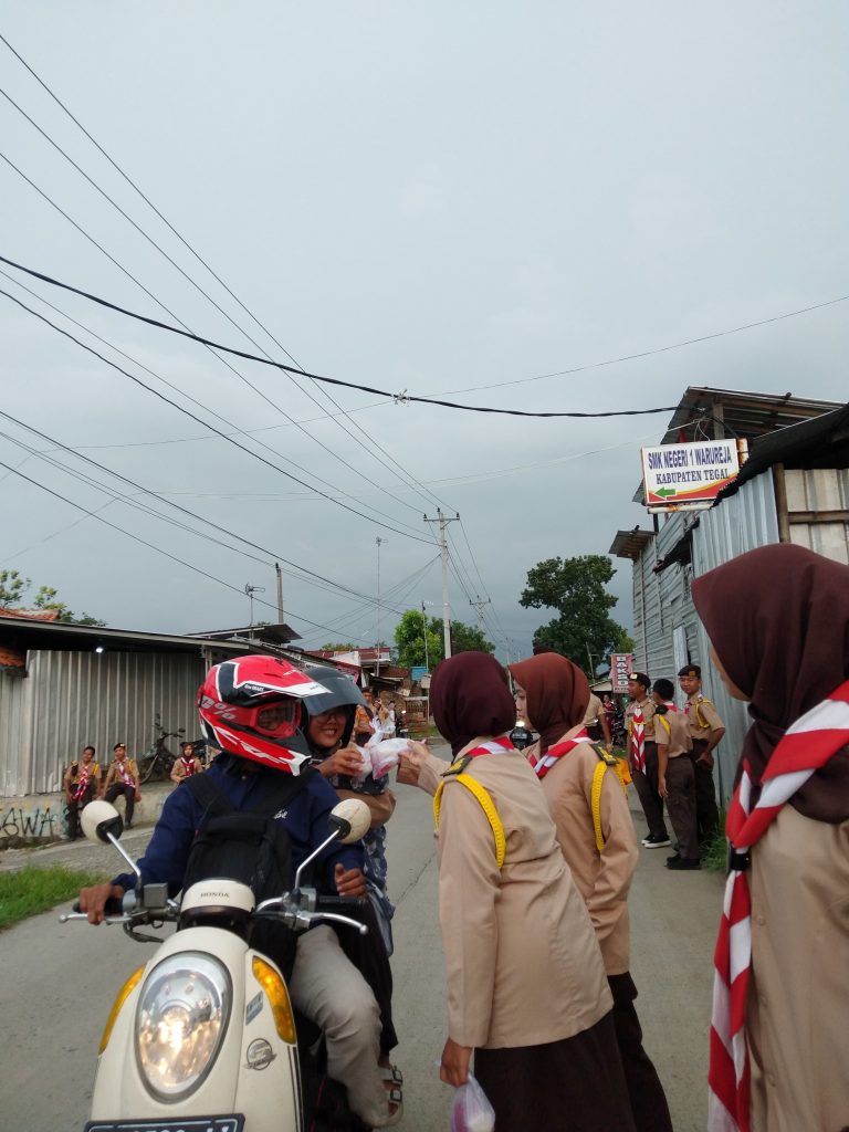 Salah satu pembina Pramuka SMK Negeri 1 Warureja Kak M. Sapi’i, S.Pd. menyampaikan bahwa kegiatan bakti masyarakat dalam bentuk berbagi takjil ini bagi sudah kesekian kalinya.
